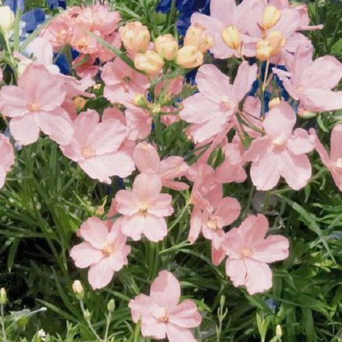 Summer Morning' is a dwarf larkspur prized for its showy spikes of soft pink, double flowers. Unlike taller delphinium varieties, this perennial has a low, mounded form with lacy green foliage, making it a great option for containers and borders blooming all summer long.